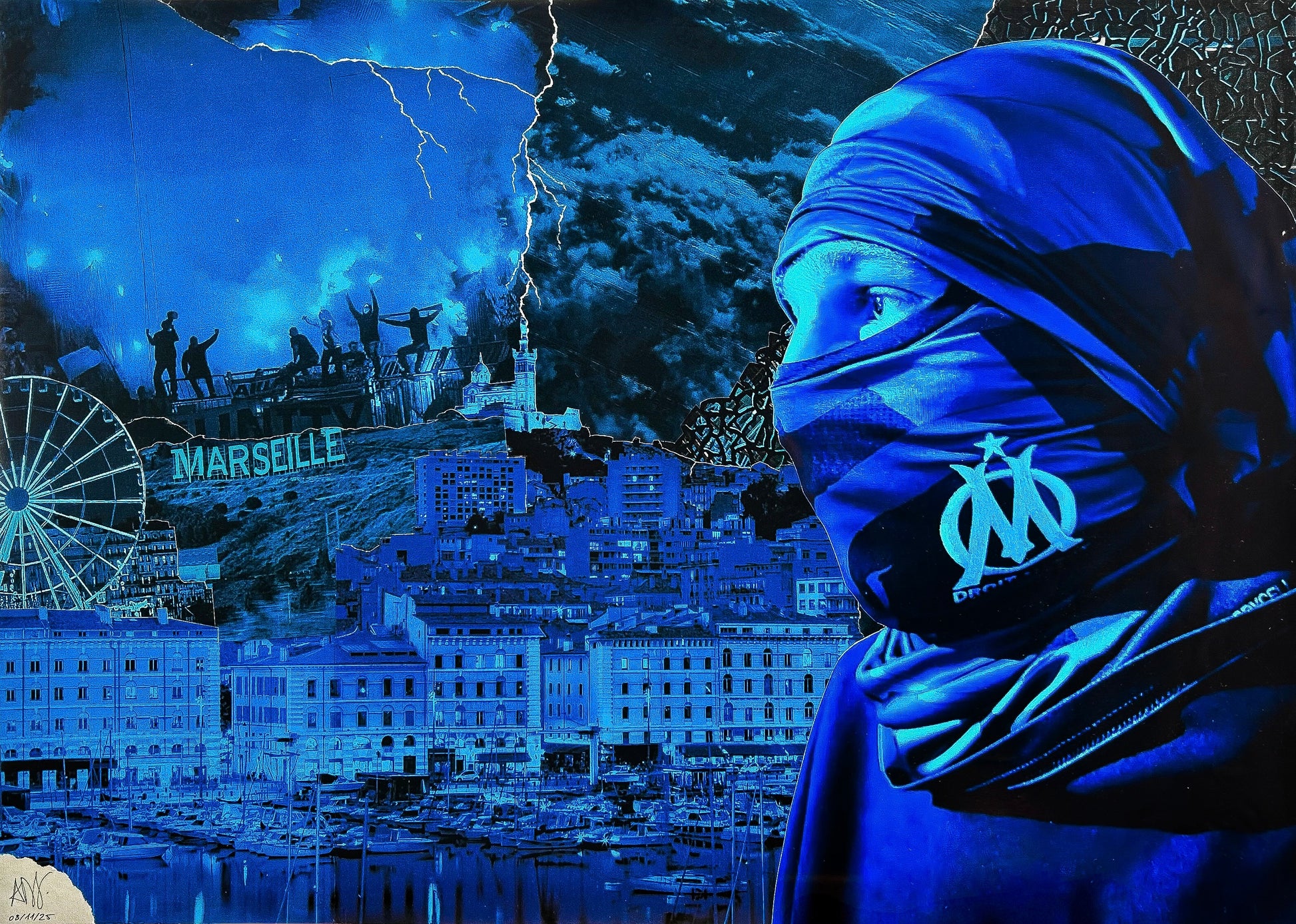 Collage imprimé sous forme de poster, issu de la création faite à la main "Coup de foudre". Format proche du A3 (faibles variations selon les imprimeurs).